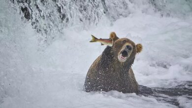 قابهای خندهدار حیات وحش؛ از سیلی یک ماهی به خرس تا تصاحب بساط پیکنیک توسط شترمرغ شاخدار!/ تصاویر