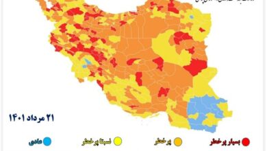بنابر اعلام مرکز روابط عمومی و اطلاع رسانی وزارت بهداشت در حال حاضر ۷۸ شهر در وضعیت قرمز، ۱۸۴ شهر در…
