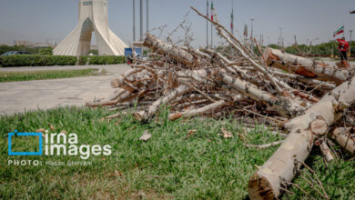 قطع درختان اطراف میدان آزادی/ شهرداری تهران: درختان خشک بودند/ عضو شورای شهر: چرا رسیدگی نکردید؟