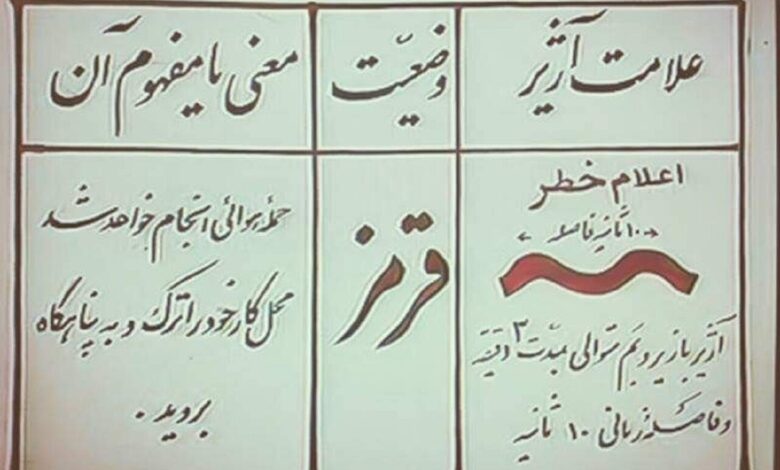 نوراحسینی: “توجه توجه؛ علامتی که هم اکنون میشنوید اعلام خطر یا وضعیت قرمز است…”آنها که خاطرات جنگ را به یاد می آورند این جمله را بارها شنیده اند. خاموشی پس از آن و ماندن در زیر زمین خانه تا زمان اعلام وضعیت سفید را به خاطر می آورند اما در این چند روز خبری از آژیر قرمز نبود.
