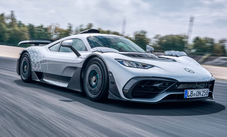 مرسدس AMG وان جدیدترین مدل در خط طولانی خودروهای پرچمدار مرسدس بنز است. به راحتی میتوان گفت این پیشرفتهترین خودروی مرسدس است که تاکنون ساخته شده. در واقع، ممکن است پیچیدهترین خودروی جادهای باشد که تاکنون توسط هر کسی ساخته شده است. زیر آن بدنه هایپرکار فوقالعاده شیک که برای بهترین آیرودینامیک و نیروی رو به پایین طراحی شده، پیشرانهای وجود دارد که مستقیماً از دنیای فرمول یک بیرون آمده است. پیشرانههای هر AMG One در همان کارخانهای تولید شدهاند که پیشرانههای فرمول یک در بریکسورث انگلستان ساخته میشوند. بخش موتور احتراق داخلی، یک موتور ۱٫۶ لیتری V۶ توربوشارژر است که تقریباً هیچ تفاوتی با موتورهای F۱ مرسدس ندارد. این موتور احتراق داخلی تا ۱۱,۰۰۰ دور در دقیقه میچرخد و تخمین زده میشود که تنها حدود ۸۰ هزار کیلومتر دوام بیاورد و پس از آن خودرو نیاز به بازگشت به مرسدس برای یک موتور جدید دارد. موتور احتراق داخلی به چرخهای عقب نیرو میدهد، در حالی که نیروی چرخهای جلو توسط دو موتور الکتریکی تامین میشوند. نتیجه این پیشرانه فوقالعاده پیچیده چیست؟ خودرویی تمام چرخ محرک با قدرت ترکیبی باورنکردنی ۱۰۴۹ اسب بخار. هیچ گشتاور خاصی برای AMG One ذکر نشده، زیرا مرسدس ادعا میکند به دلیل پیچیدگی پیشرانه، اندازهگیری دقیق آن بسیار دشوار است. تمام این قدرت از طریق یک قطعه مهندسی دیگر به سبک F۱ (یک گیربکس دستی اتوماتیک ۷ سرعته تککلاچه) منتقل میشود. تمام این قدرت کمک زیادی به AMG One میکند تا به حداکثر سرعت محدود شده ۳۵۲ کیلومتر بر ساعت برسد.