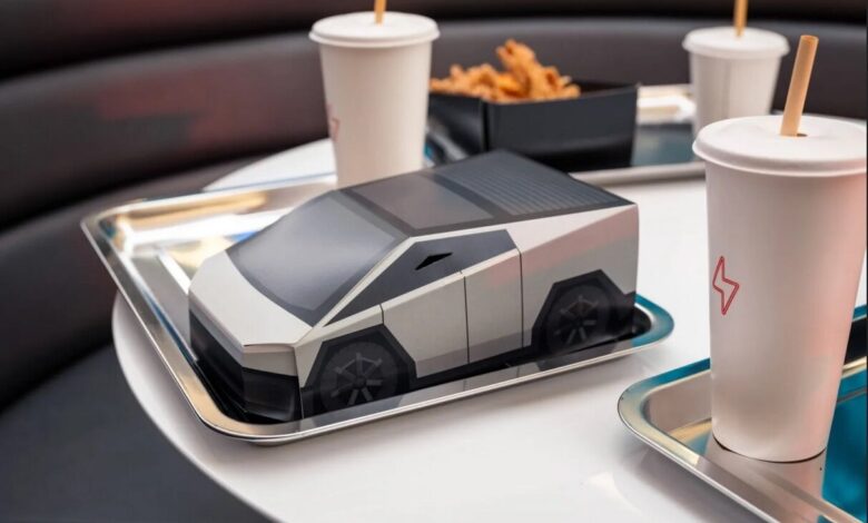منوی این رستوران، به سبک رستورانهای کلاسیک “داینر” آمریکایی است و غذاهایی از جمله همبرگر، هاتداگ و سیبزمینی سرخکرده را ارائه میدهد؛ تفاوت اصلی اینجاست که همه غذاها در جعبههایی به شکل خودروی سایبرتراک (Cybertruck) سرو میشوند.