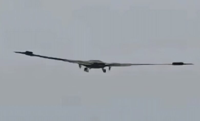 تصویر جدید منتشر شده از این پرنده در حال پرواز، از نمایی از عقب آن است که ارابه فرودش پایین آمده، درهای بزرگ چرخ اصلی باز هستند و بالکهای دو تکهای مشابه با بمبافکن B-2 در لبههای بیرونی بالها باز شدهاند که همگی با حالت برخاست یا فرود سازگار هستند. از این زاویه مشخص است که بدنه ترکیبشده بال و بدنه شامل بخش مرکزی پهن با سطح بالایی کاملاً تخت است. در این تصویر، این پرنده کابین ندارد؛ هرچند نمیتوان احتمال وجود آن را کاملاً رد کرد. شکل بخش مرکزی هم نشان میدهد که این هواپیما احتمالاً دو موتوره است و خروجیهای باریک شکاف مانندی دارد؛ هرچند که کیفیت پایین تصویر مانع از تشخیص دقیق جزئیات میشود.